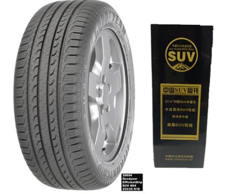 El neumático Goodyear EfficientGrip SUV ganó el premio al mejor neumático SUV del año 2014 en China. El certamen fue organizado conjuntamente por Chinasuv.cn y China SUV Weekly. El premio reconoce el espectacular rendimiento del EfficientGrip SUV, diseñado para ser el neumático SUV más eficiente y silencioso de Goodyear.